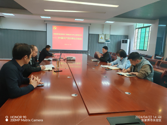 本网讯(通讯员 罗江华)按照党纪学习教育的通知要求,为了推动公司党纪学习教育走深走实,4月22日下午,公司党总支理论学习中心组在3321会议室开展了《中国共产党纪律处分条例》专题学习。公司全体党员参加专题学习。