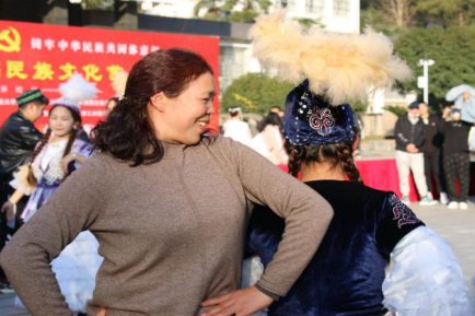 民族风情展上,苗鼓声阵阵入耳、声入人心,蒙古族的同学向白晋湘书记介绍着民族特色马奶酒。壮族的烤糍粑和维吾尔族的烤羊肉串香味四溢、别有风味。在哈萨克族的待客桌上,老师们品尝着包尔萨克、奶茶,享受着冬不拉的动听旋律。维吾尔族和哈萨克族的同学们载歌载舞,尹祝寿经理、李超书记和钟洪波副书记被同学们的真情和热情打动,也加入其中,随歌起舞。