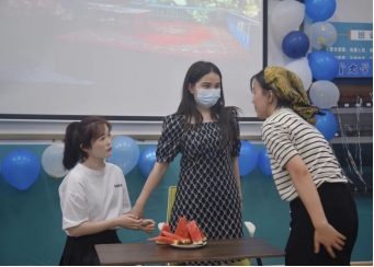 小品《漫漫援疆路,浓浓援疆情》为我们讲述了各种不同职业的劳动人民援疆故事,《援疆那些年》展现了知识和教育的重要性,《纸包不住火》幽默风趣地揭露了脱贫致富的工作中有些村干部弄虚作假、欺上瞒下的现实。活动过程中,同学们还穿插了新疆舞蹈表演,开展了“吹乒乓球”的小游戏来活跃现场气氛,老师和同学都乐在其中。