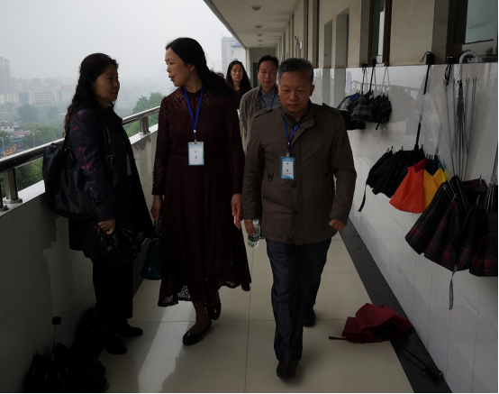 图为罗金铭副董事长、尹祝寿经理陪同省教育厅艾美华副处长(左一)巡视