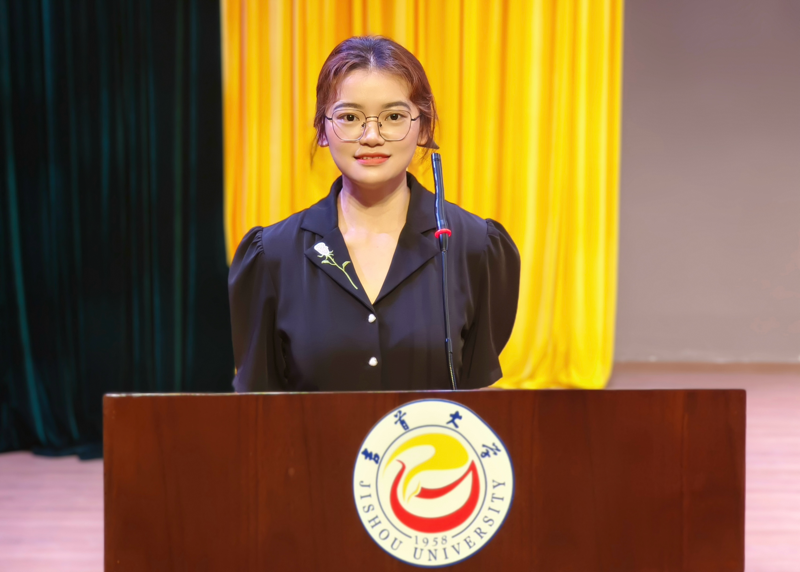 随后,由鲜佳琪同学带领2025届同学庄严宣誓:“我们将牢记‘以人名校,以业报国’的校训,秉承‘凤飞千仞,薪传八方’的吉大精神,坚定理想信念,促进各族人民交往交流交融,维护民族团结,铸牢中华民族共同体意识,为实现中华民族伟大复兴而努力奋斗!”